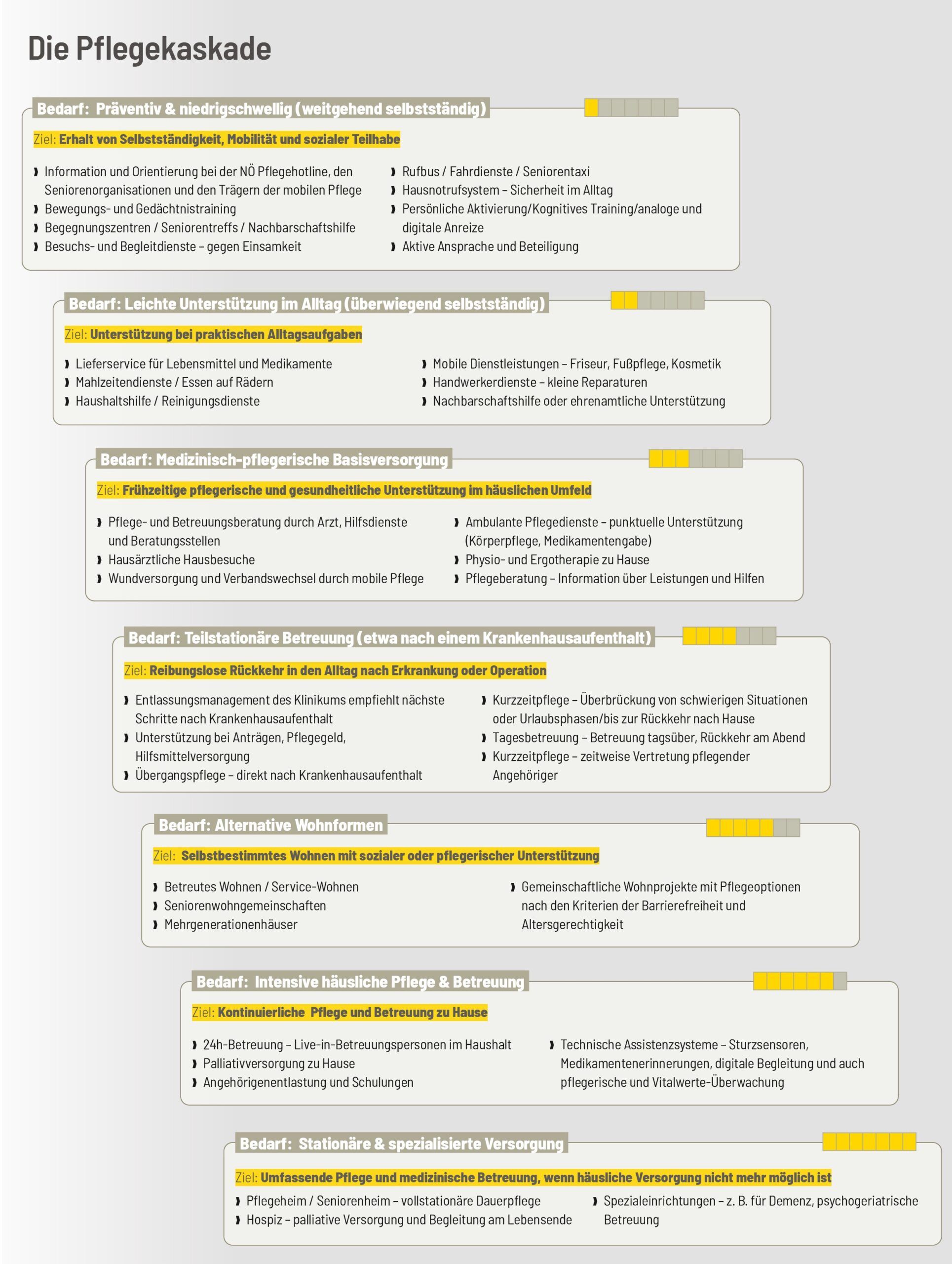 Pflege ist und bleibt ein zutiefst menschliches Thema. Doch gerade dort, wo Nähe, Zuwendung und Verantwortung gefragt sind, kann digitale Technik heute einen entscheidenden Beitrag leisten – als stiller Helfer im Hintergrund oder, wie es Präsident Pressl in seinen Ausführungen auf Seite 6 beschreibt, als KI-gestützter Pflegeroboter in naher Zukunft. In Niederösterreich zeigen zahlreiche Initiativen, wie digitale Werkzeuge Pflege, Betreuung und Alltag spürbar verbessern können. Die sogenannte „Pflegekaskade“ erläutert diesen Weg in klaren Phasen – von der Prävention über Alltagsunterstützung bis zur intensiven Pflege. In jeder Phase können digitale Systeme gezielt eingesetzt werden, um Selbstständigkeit zu erhalten und Angehörige wie Gemeinden zu entlasten.