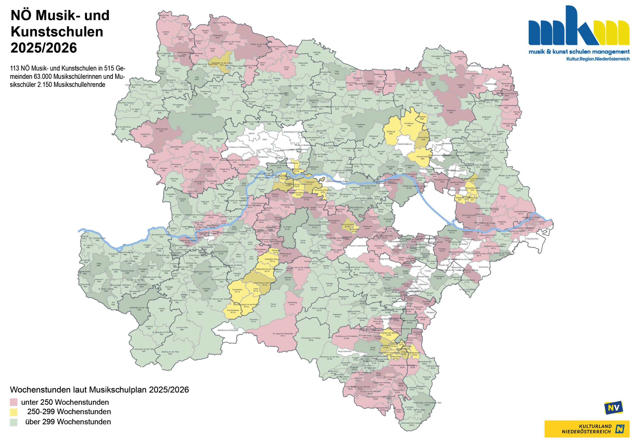 - Insgesamt besuchen derzeit rund 63.000 Musikschüler die Musik- und Kunstschulen in Niederösterreich – begleitet von 2.150 engagierten Musikschullehrenden.